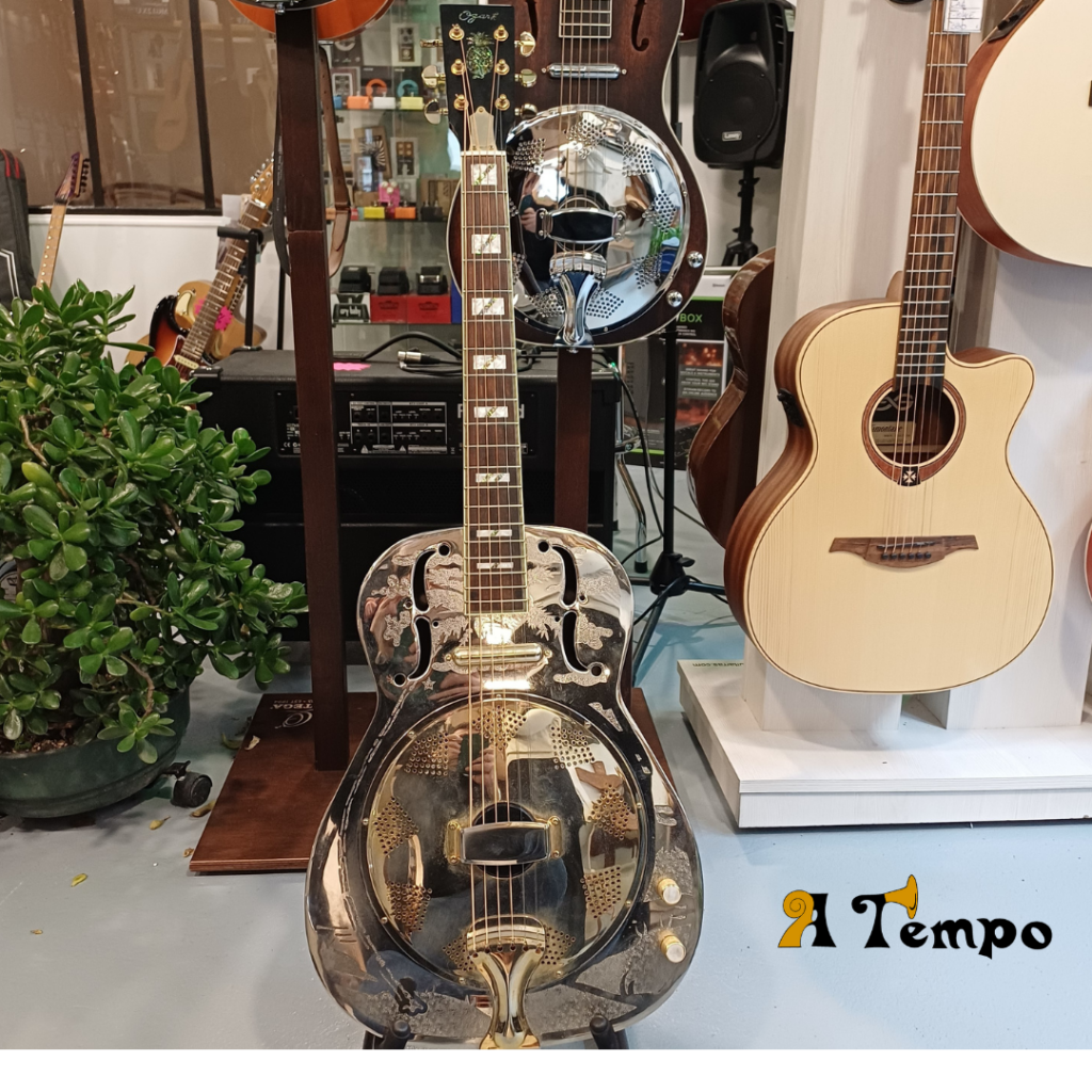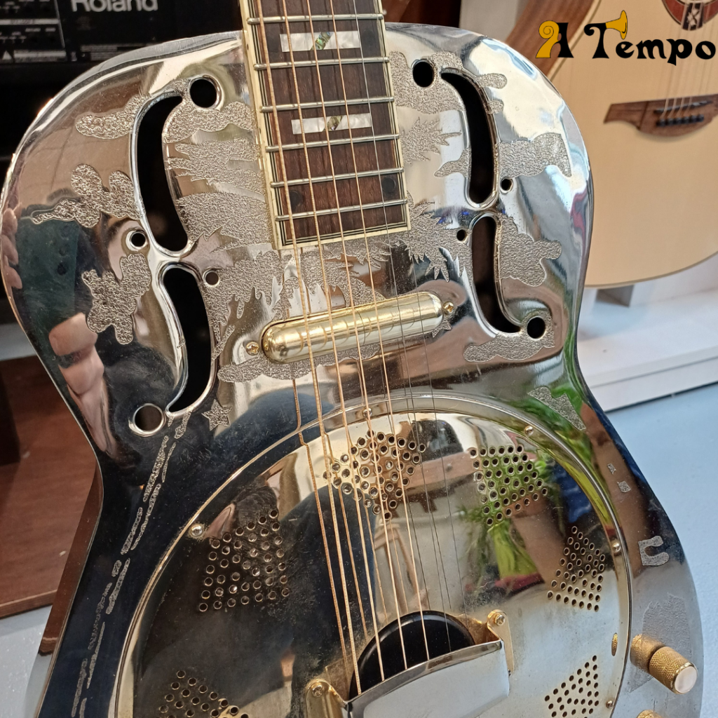 Ne limitez pas votre son. Cette guitare à résonateur vous permet de projeter votre son loin et large grâce au micro de style « rouge à lèvres » et aux commandes de volume et de tonalité faciles à utiliser. Le micro produit une articulation brillante et une gamme supérieure qui brille magnifiquement. Ces aigus s’envoleront des haut-parleurs, captivant tout le monde dans leur sillage. Il suffit de le brancher sur un ampli ou un système de sonorisation pour être prêt pour une performance inoubliable. Bon état, révisée, avec housse, visible au Puy en Velay